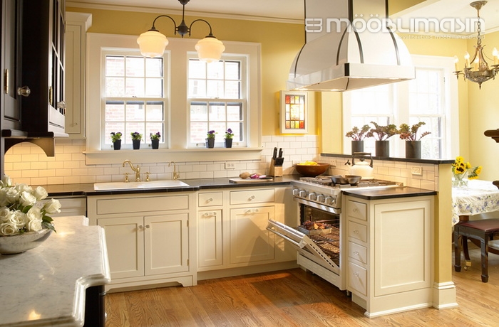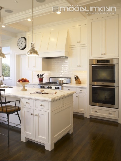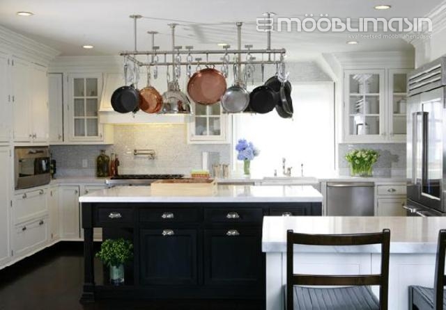 7. Neutraalsed toonid. Klassikaline köögimööbel ei pea alati olema täiesti valget värvi. See köögistiil lubab kasutada ka peitsitud või värvitud esipaneele. Ja isegi kui “valge” mööbel on toonitud, siis lihtne ukse stiil (puhta ja peene joonega raam) sobitub kenasti klassikalise stiili üldmuljega. Must ja valge on ajatuim kombinatsioon. Köögis, kus on selle värvikombinatsiooniga liigselt mängitud, võib tulemus muutuda modernseks, nt on köögisaar musta värvi ja kasutatud tumedaid seinaplaate valge vuugiga.